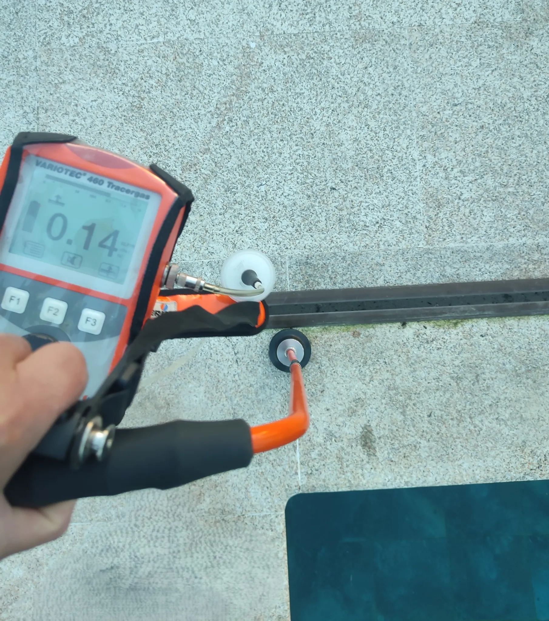 Detección de fuga en piscina en Galicia mediante la utilización de equipo electroacústico y método de gas trazador